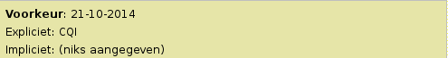De voorkeuren worden beheerd in de codetabel Voorkeurcode in het codetabel-scherm onder module kern.d060_voorkeuren. Voor CQI is er een voorkeur van belang, genaamd CQI.