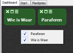 Door een widget in dit menu aan- of uit- te vinken, worden de widgets toegevoegd of verwijderd van het dashboard. De widget-instelling wordt alleen op de lokale computer opgeslagen. Bij een gedeelde OpenAC installatie (niet aanbevolen volgens de installatiehandleiding, maar komt voor bij sommige RDS installaties) kan dat ertoe leiden dat de dashboard-instellingen van verschillende gebruikers elkaar overschrijven.