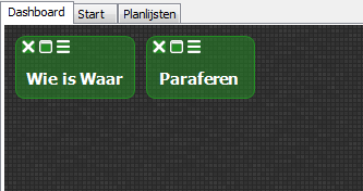 Het dashboard zelf is een groot grijs vlak, waar groene widgets op kunnen liggen (hier zijn het er twee, allebei dichtgeklapt).